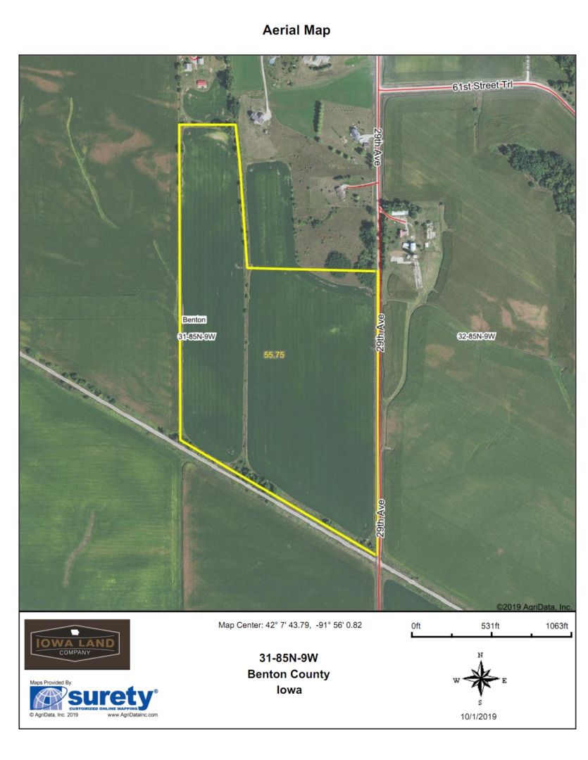56 +/- taxable acres located in Benton County, Iowa Benton Township, Section 31. Exact legal description will come from the deed.