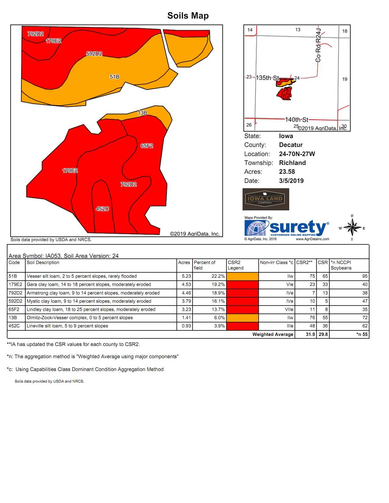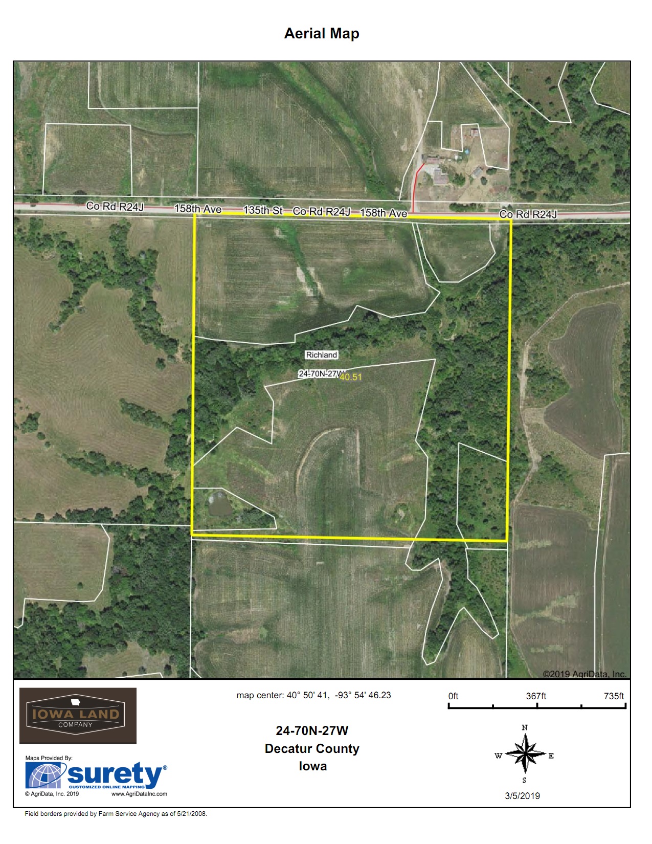 40 +/- acres located in Decatur County, Iowa; Richland Township, Section 24. Exact deed will come from the new abstract.