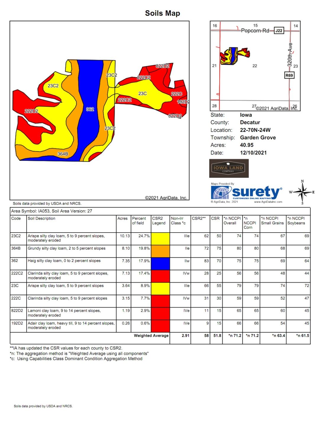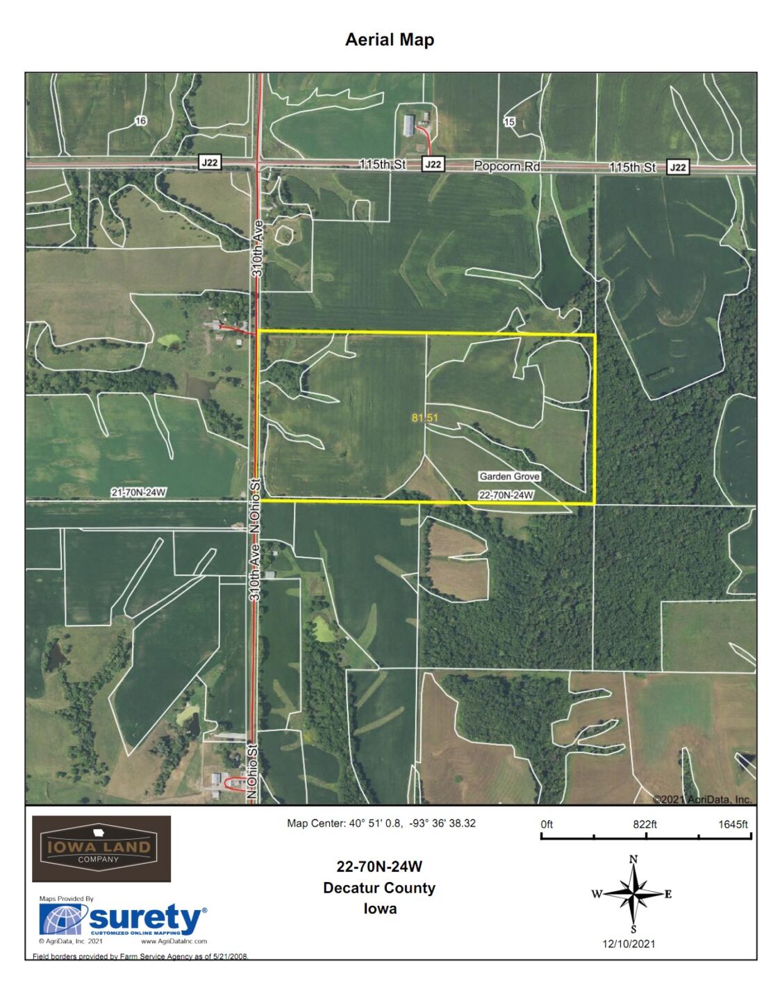 • 80 +/- acres located in Decatur County, Iowa; Garden Grove Township, Section 22. Exact legal will come from the abstract.