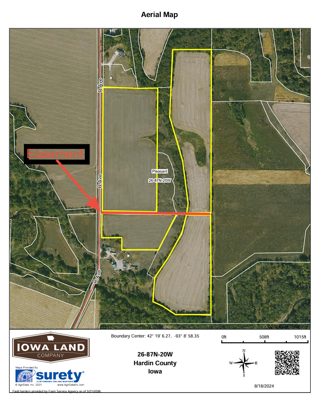 60.59 +/- surveyed acres located in Hardin County, Iowa, Pleasant Township, Section 26. Exact legal description will come from the abstract.