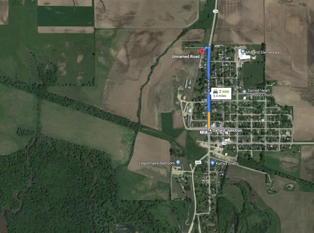 - From Oxford Junction, IA head north on IA 136 hwy for 1⁄2 mile.