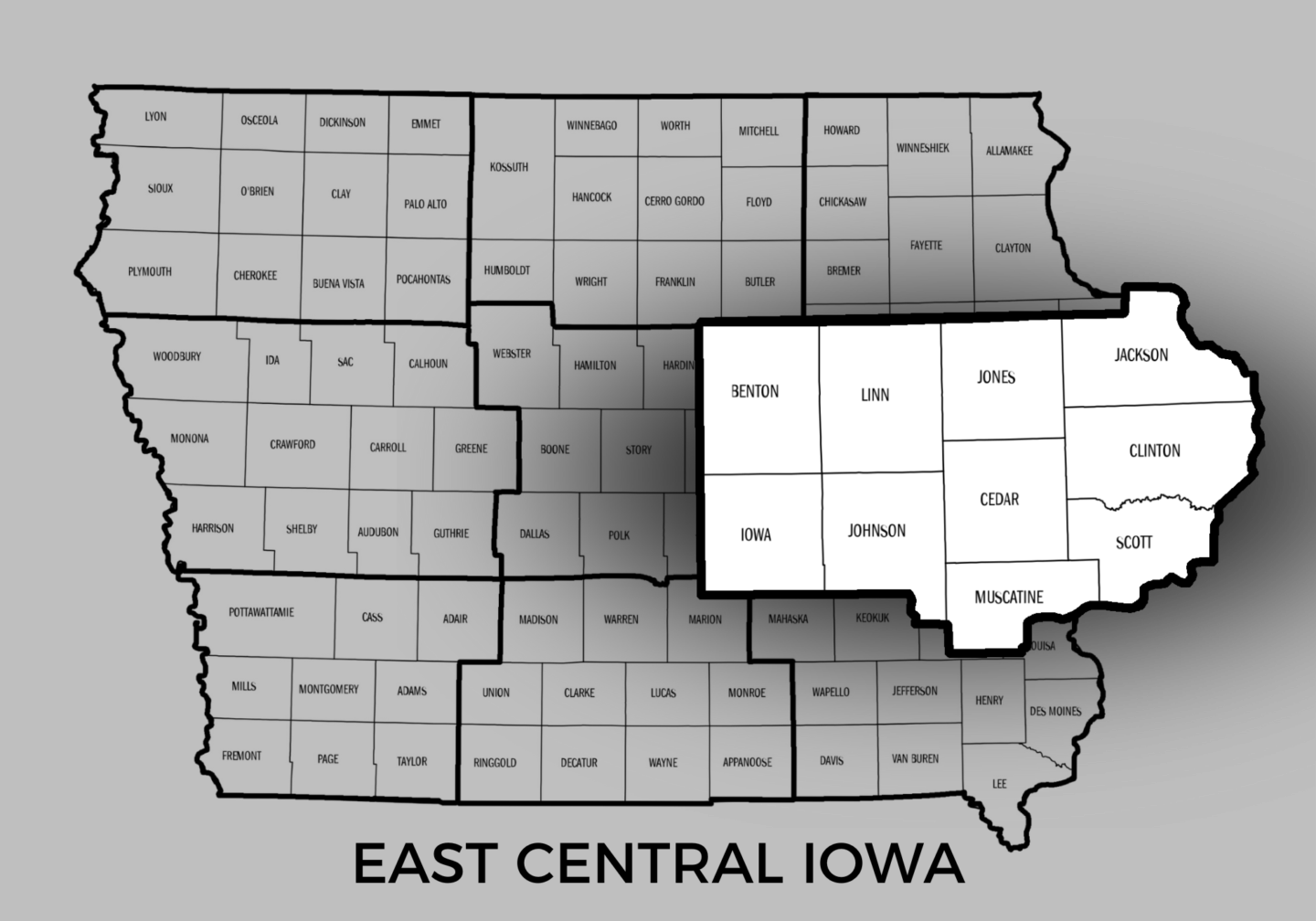 Adjacent Counties:Â Linn, Jones, Clinton, Scott, Muscatine, Johnson