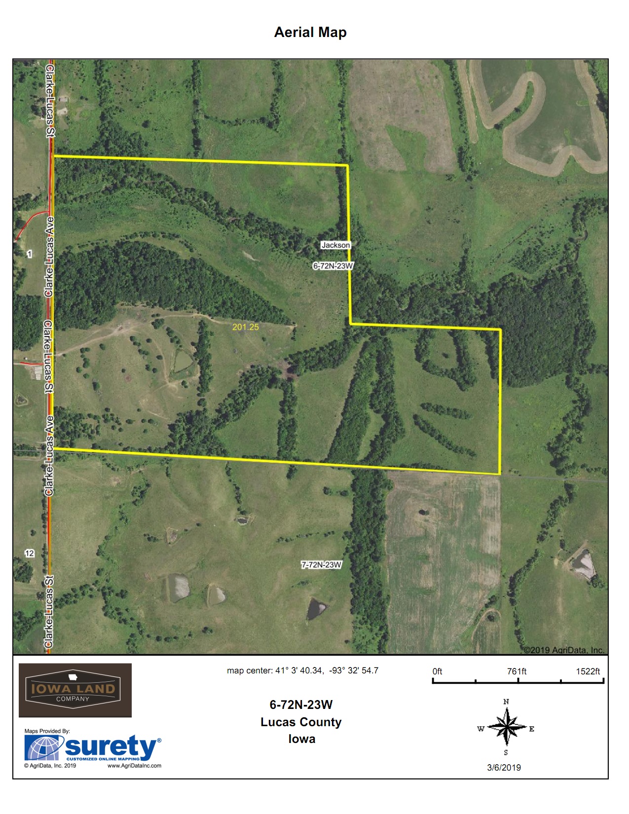 200 +/- acres located in Lucas County, Iowa; Jackson TWP, Section 6. Seller will provide a survey. Exact deed will come from deed