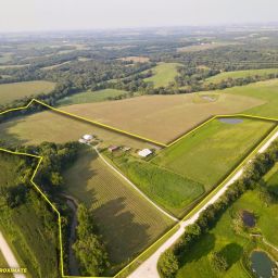 Take Hwy 34 west 1 mile turn north on 163, and immediately turn left on 87th. Go 3.5 miles to 194th Ave- turn right (north). Go 1.5 miles to Whiskey Ridge turn left (west), go 1.7 miles and the farm will be on your right-hand side (North). You will see for sale signs on the property.