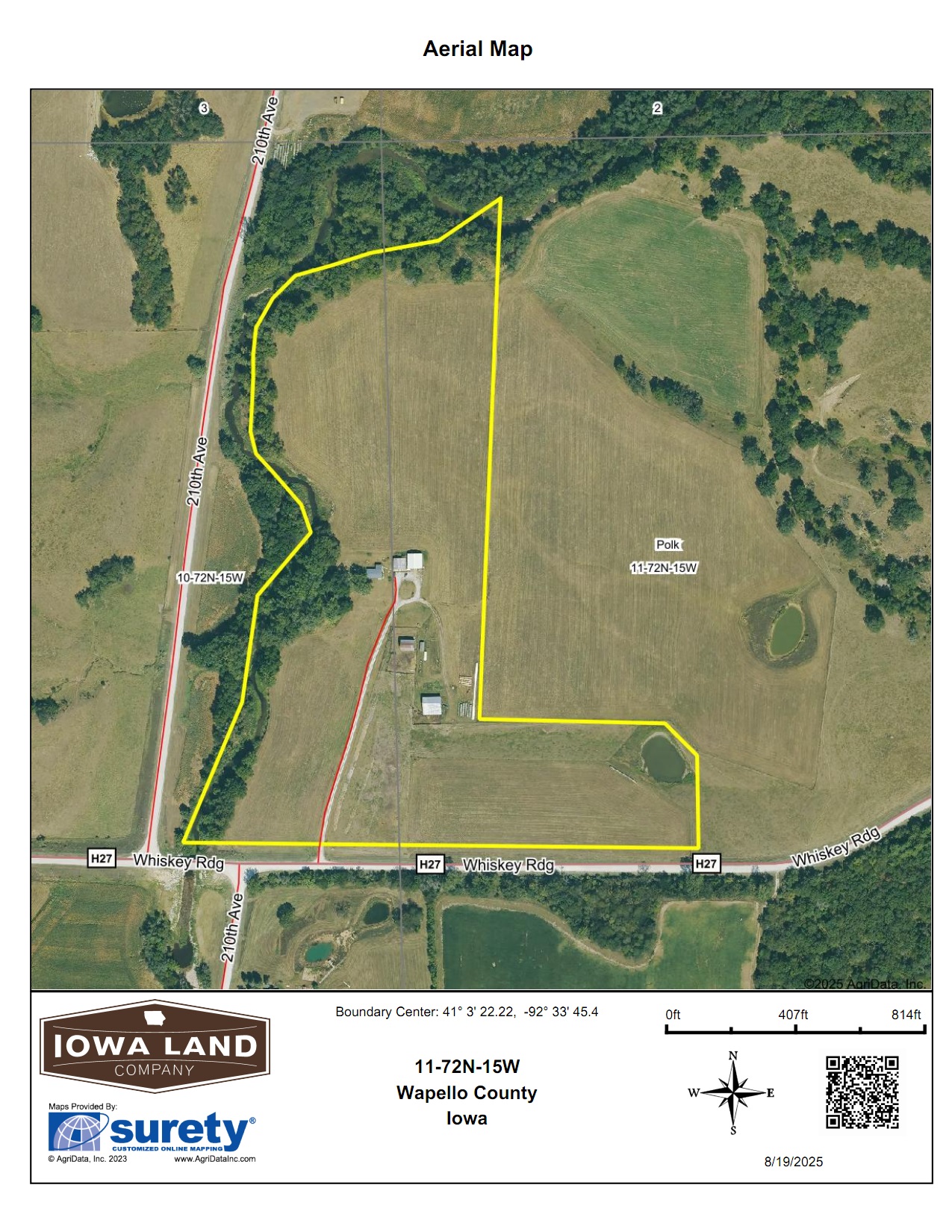 Looking for peaceful country living with the town just minutes away? This 38+/- acre property in Southern Iowa offers the perfect blend of seclusion and convenience. This cozy 1,024 sq ft home has 3 bedrooms (1 nonconforming), 1 bath, home features a large kitchen with ample counter and cabinet space. A spacious master bedroom with walk in closet, open living room ready to entertain. Stay connected with high-speed internet already on site-a bonus for rural living. Two large metal buildings, a 36×36 shop with a concrete floor and a 40×50 storage building dirt floor and a 16×50 lean-to with a concrete floor, ideal for equipment, hobby use, or business operations. There are 23 +/- acres of crop ground with a CSR2 of 60.4 that are currently in alfalfa.