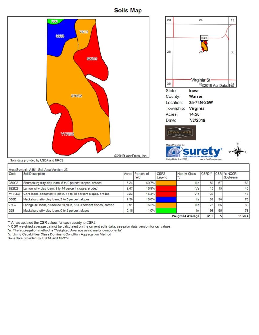110 +/- acres located in Warren County, Iowa; Section 25, Virginia TWP