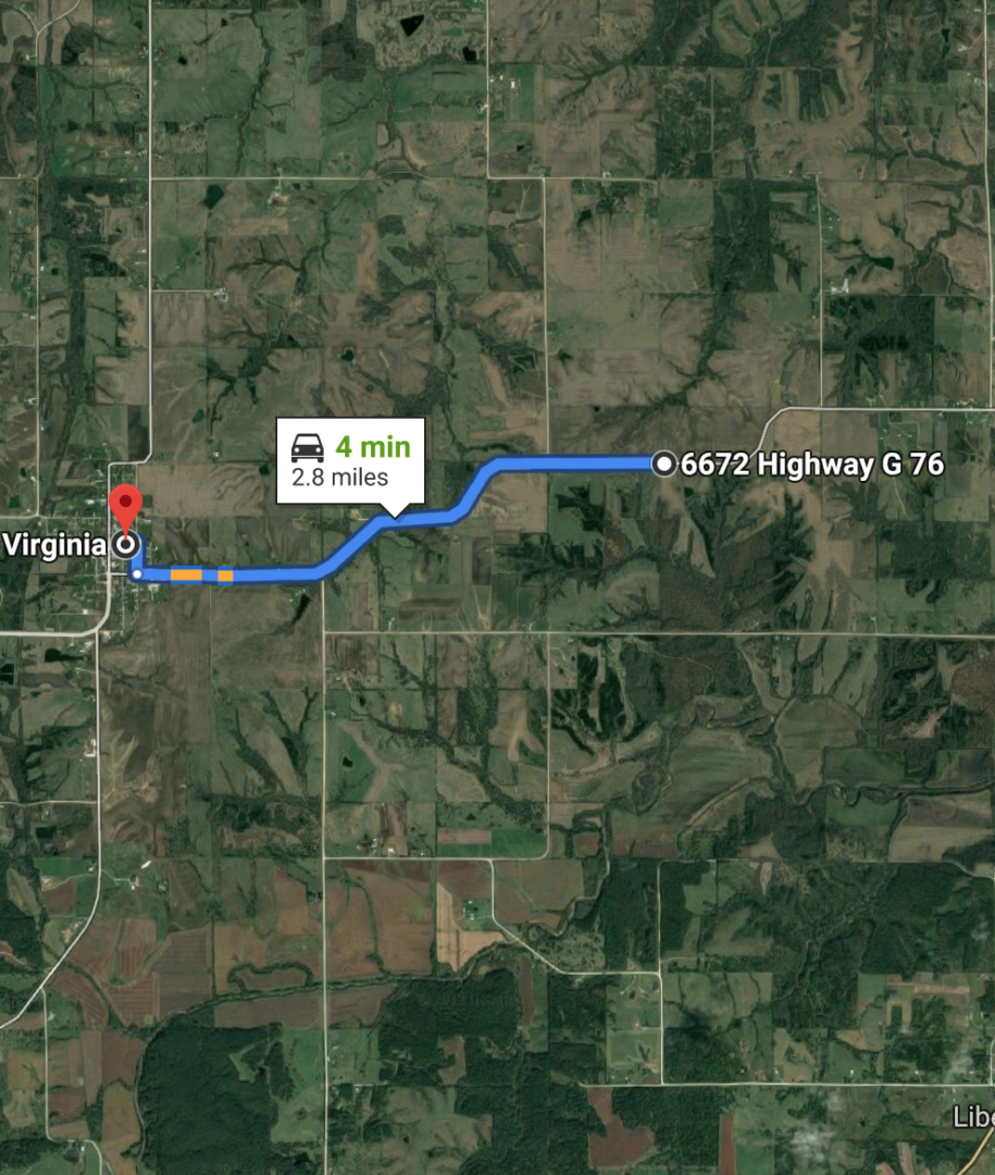- Farm is 3 miles east of New Virginia, IA on the south side of G76