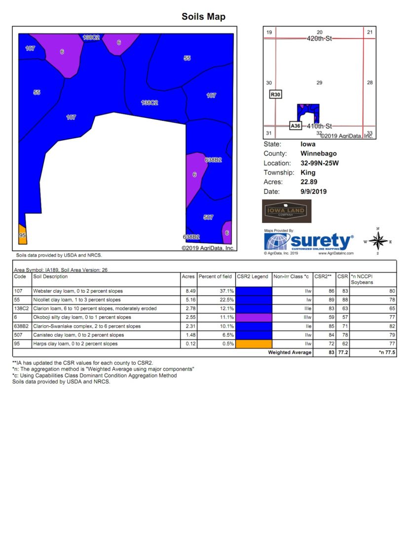 Located in Section 29 and 32 of King TWP, Winnebago County, Iowa. See exact legal description will come from the deed.